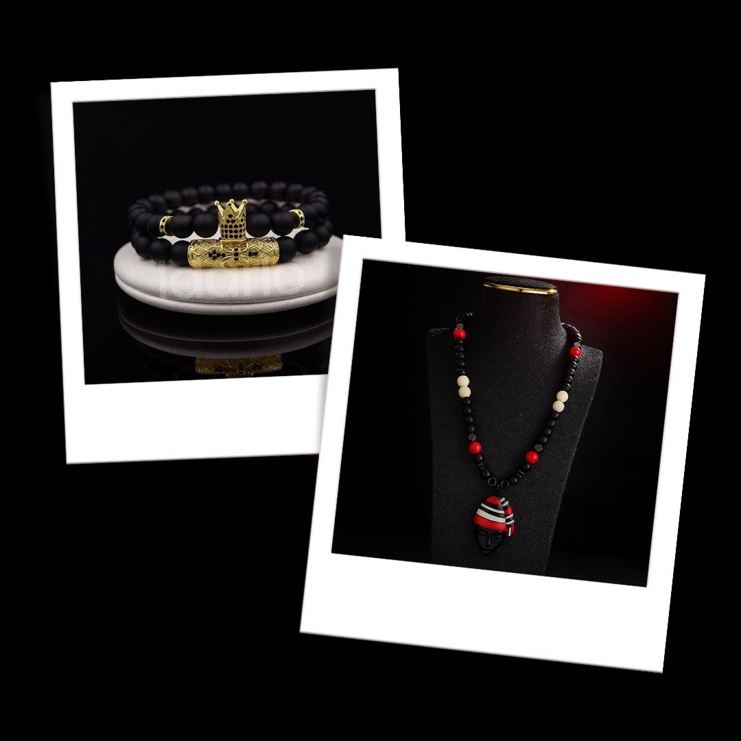 Add a bold statement to your style with this Royal Heritage Pendant Necklace & King’s Crown Bracelet, a timeless piece inspired by African artistry and cultural heritage.